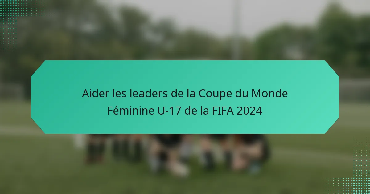 La Coupe du Monde Féminine U-17 de la FIFA 2024 offre une occasion unique aux leaders de divers rôles de façonner une expérience mémorable pour le tournoi. Des organisateurs d’événements au personnel d’entraîneurs, un leadership efficace est essentiel pour la planification stratégique, la communication et le développement de la dynamique d’équipe. En mettant en œuvre des pratiques inclusives et en renforçant la motivation, les leaders peuvent avoir un impact significatif sur le succès de cet événement prestigieux.
