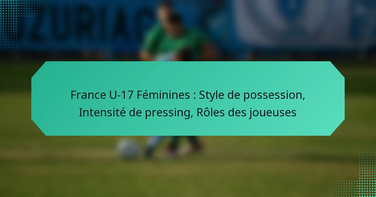 L’équipe de France U-17 féminine emploie des rôles de joueurs distincts qui contribuent à leur style de possession et à leur intensité de pressing. Les responsabilités de chaque joueur sont adaptées pour améliorer la dynamique de l’équipe et s’adapter à divers adversaires, garantissant une stratégie cohésive sur le terrain.