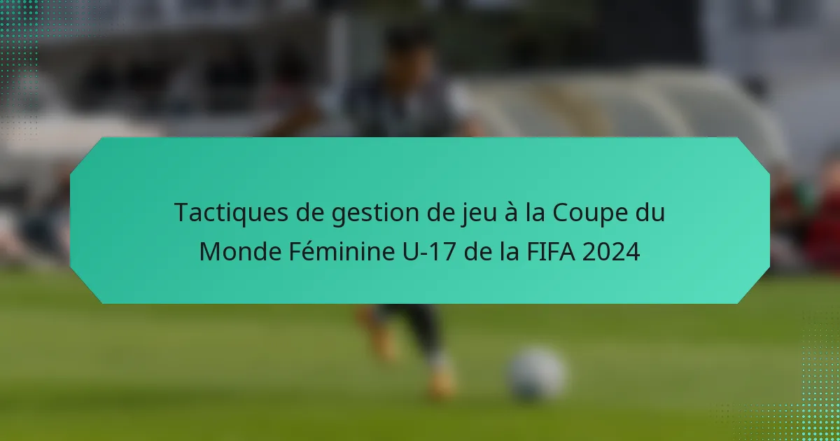 Les tactiques de gestion de jeu lors de la Coupe du Monde Féminine U-17 de la FIFA 2024 font référence aux stratégies que les équipes emploient pour contrôler le flux et l’issue des matchs. Ces tactiques sont cruciales pour maintenir son calme, prendre des décisions stratégiques et maximiser la performance tout au long du jeu.