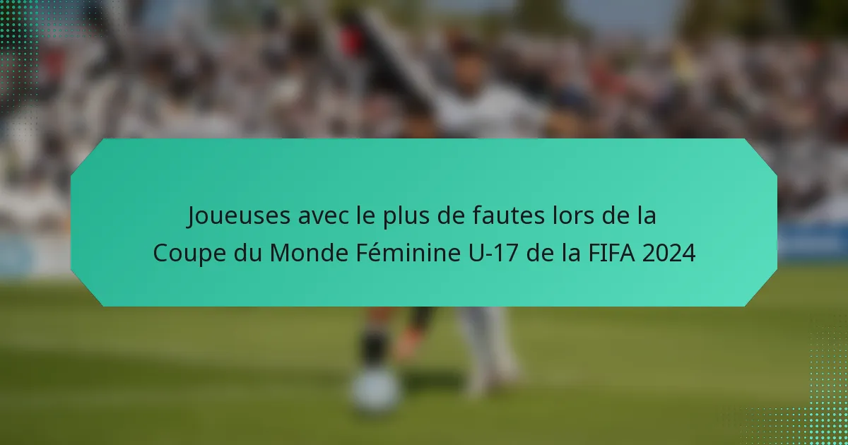 Lors de la Coupe du Monde Féminine U-17 de la FIFA 2024, plusieurs joueuses se sont distinguées par leur style de jeu agressif, entraînant un nombre élevé de fautes. Ces joueuses ont accumulé un nombre significatif de fautes, impactant les stratégies de leurs équipes et les résultats des matchs.